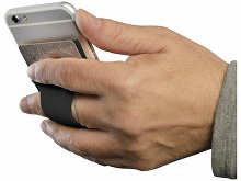 Silicone cardholder for phone with finger hole. The cardholder can be easily attached to almost all smartphones with a flat panel on the back using sticky tape. It can hold a credit card/ identification card/ room key card / 5 business cards or banknotes. Finger hole for more convenient phone grip.
