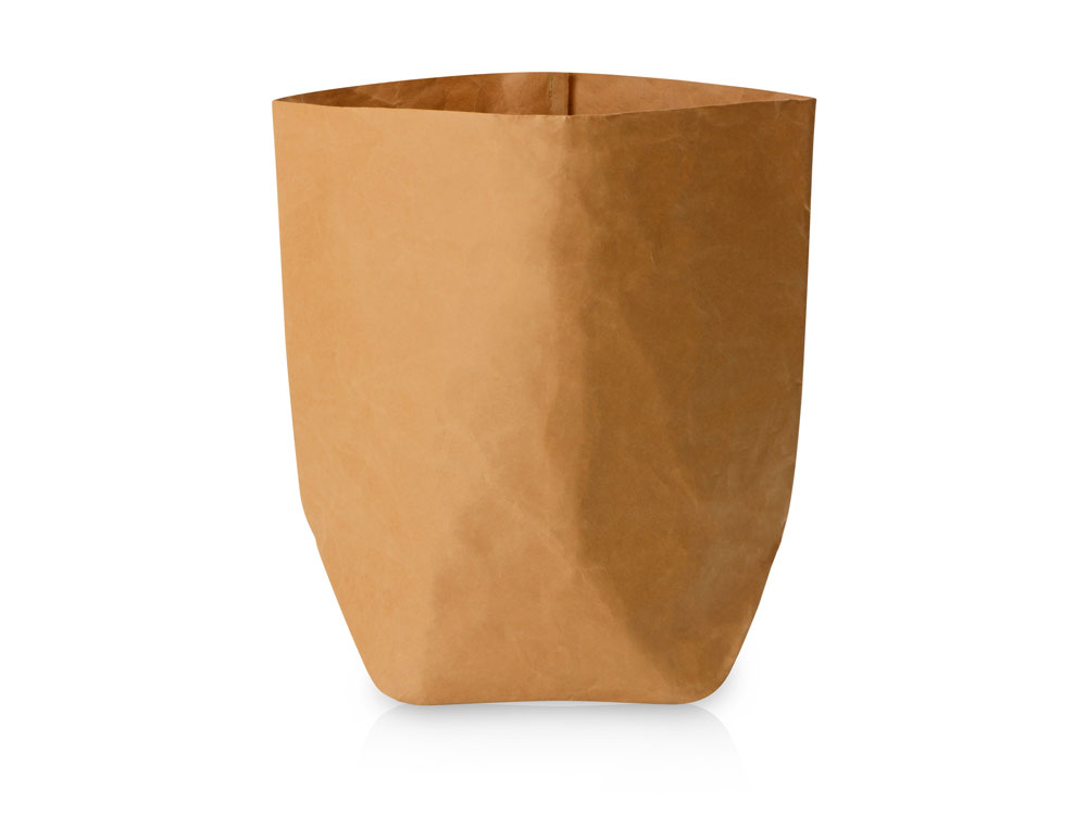Waterproof organizer made of craft paper is a dense packet that can be used in various ways. It can be used to store vegetables and fruits in the fridge, serve as a storage place for small items in the office, hold a flower pot and tray for decorative purposes, or wrap a lunch box before heading to work - there are many possible uses.