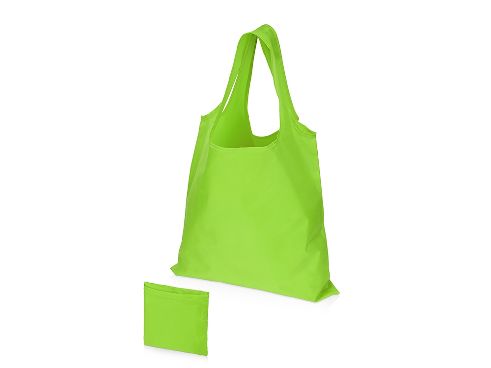 Compact folding shopping bag. Inside there is a convenient pocket in which the shopper folds for easy storage. Wide handles provide additional comfort. Eco-material made from recycled plastic. Handle width 6 cm, height 20 cm.