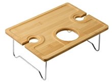 Imagine yourself enjoying the sunset with a glass of your favorite wine, without worrying about spilling it. This elegant table is equipped with two special indentations for securely holding glasses, and a central hole that is perfect for stable placement of a bottle.