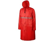 The long raincoat is made of polyester with a water-repellent treatment. It fastens with a zipper, over which there is a button placket, which additionally protects against wind and soaking. The hood fit can be adjusted with a drawstring, the sleeve width is adjustable with a button. Reflective tape on the chest and back makes the person in the coat visible even in the dark. Spacious patch pockets are protected by a flap. Additional seam sealing of the raincoat provides a high degree of waterproofness.