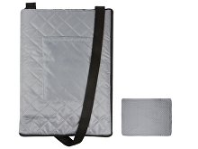 Two-sided blanket with water-repellent coating on one side and soft fleece on the other. Folds into a shoulder bag and is secured with a zipper. When folded, it has an adjustable length strap for carrying and an external pocket for small items.