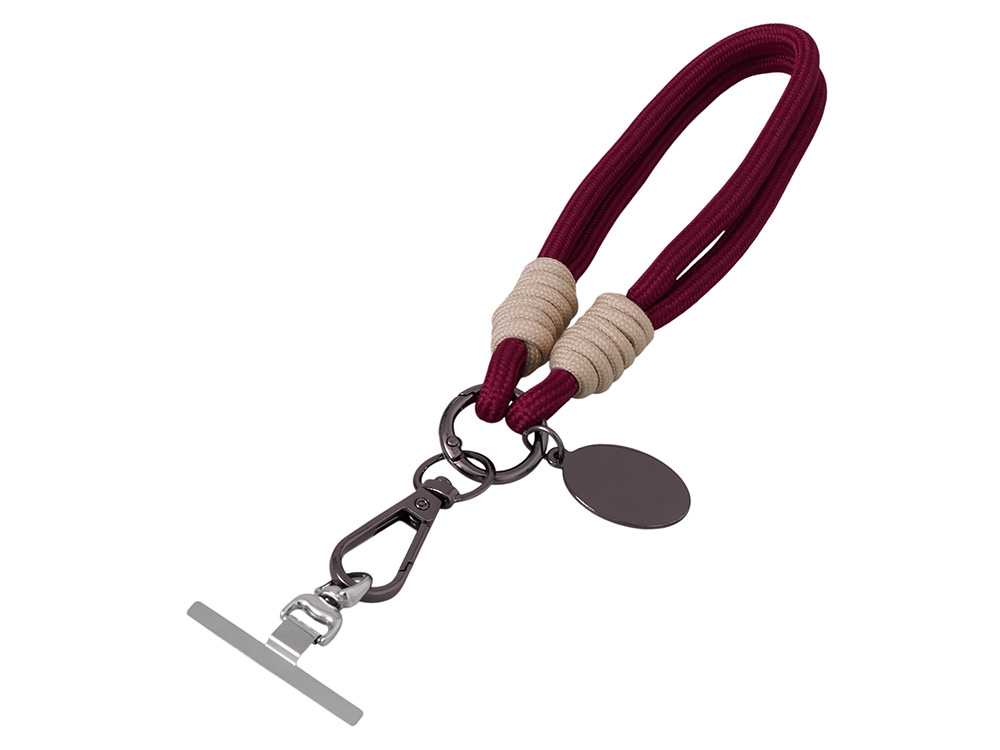 Keychain-bracelet "Bohemian" with a metallic phone holder, burgundy., burgundy