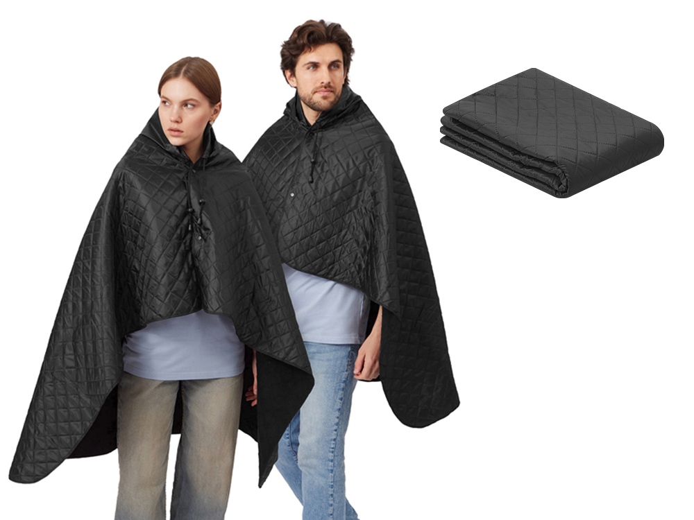 Blanket 2-in-1 can be used as a waterproof cover on the ground and as a warming and waterproof throw during a picnic in nature. One side of the blanket has a water-repellent coating, while the other side is soft fleece. It is pleasant and warm to sit on the inner side made of fleece, and the outer side made of polyester with a water-repellent coating prevents the blanket from getting wet or heavily soiled. For added convenience when using the blanket during rain, a hood is included that can be fastened with Velcro. By throwing the blanket over your shoulders, fasten it with buttons at the top and put on the hood. You will not get wet during unexpected rain! A storage bag is included, which can be used to apply your logo.