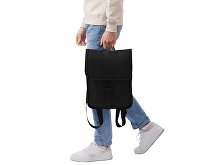 This business backpack made of pleasant to the touch PU leather is convenient for moving around the city with gadgets. The backpack is equipped with everything necessary for comfortable use: a carabiner closure with adjustable capacity of the backpack, adjustable straps, a laptop pocket inside, a strap for attaching to the handle of a suitcase outside.