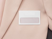 Durable magnetic badge made of plastic. The magnetic attachment allows you to quickly attach and remove the badge without extra effort or holes in the fabric.
