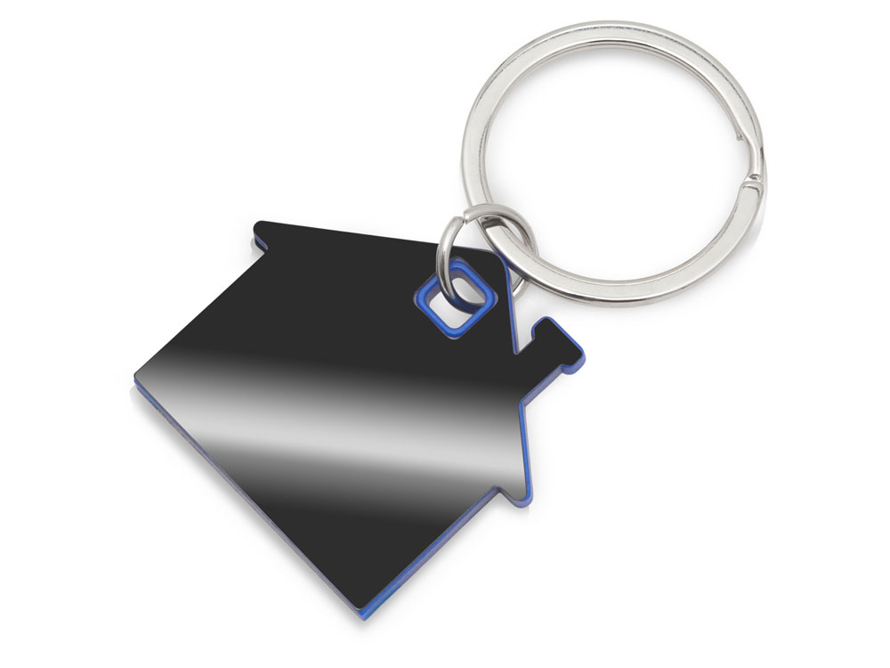 Metal keychain with colorful plastic insert "SteelPop House", silver with blue, steel SKU 180976
