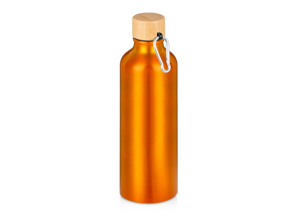 Durable water bottle with an aluminum body and bamboo lid is perfect for active people. A sturdy body, carabiner for attaching to a belt. Bottle volume is 770 ml. The body can be engraved or printed using the tampoprint method. A spare polypropylene lid is included.